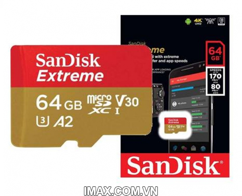 Thẻ nhớ SanDisk Extreme® microSDXC ™ cho phép bạn tiết kiệm thời gian truyền tải phương tiện với tốc độ đọc lên đến 190MB / s được hỗ trợ bởi Công nghệ SanDisk® QuickFlow ™ 10 (64GB - 1TB). Ghép nối với SanDisk® Professional PRO-READER SD và microSD ™ để đạt được tốc độ tối đa (bán riêng). Với tốc độ ghi lên đến 130MB / s, nó lý tưởng cho điện thoại thông minh Android ™, máy ảnh hành động hoặc máy bay không người lái của bạn. Thẻ microSD ™ hiệu suất cao này xử lý quay video 4K UHD, video Full HD2 và ảnh có độ phân giải cao. Thêm vào đó, nó được xếp hạng A2, vì vậy bạn có thể có được hiệu suất ứng dụng nhanh chóng để có trải nghiệm điện thoại thông minh đặc biệt.