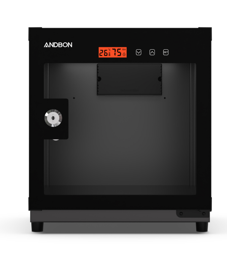 -Tủ chống ẩm gồm có một khoang, một cánh cửa kính 2 lớp chống xước được thiết kế chịu sự va đập và đảm bảo tuyệt đối độ ẩm bên trong với hệ thống gioăng cao su từ bao quanh tạo nên sự chắc chắn mỗi khi mở ra đóng vào.