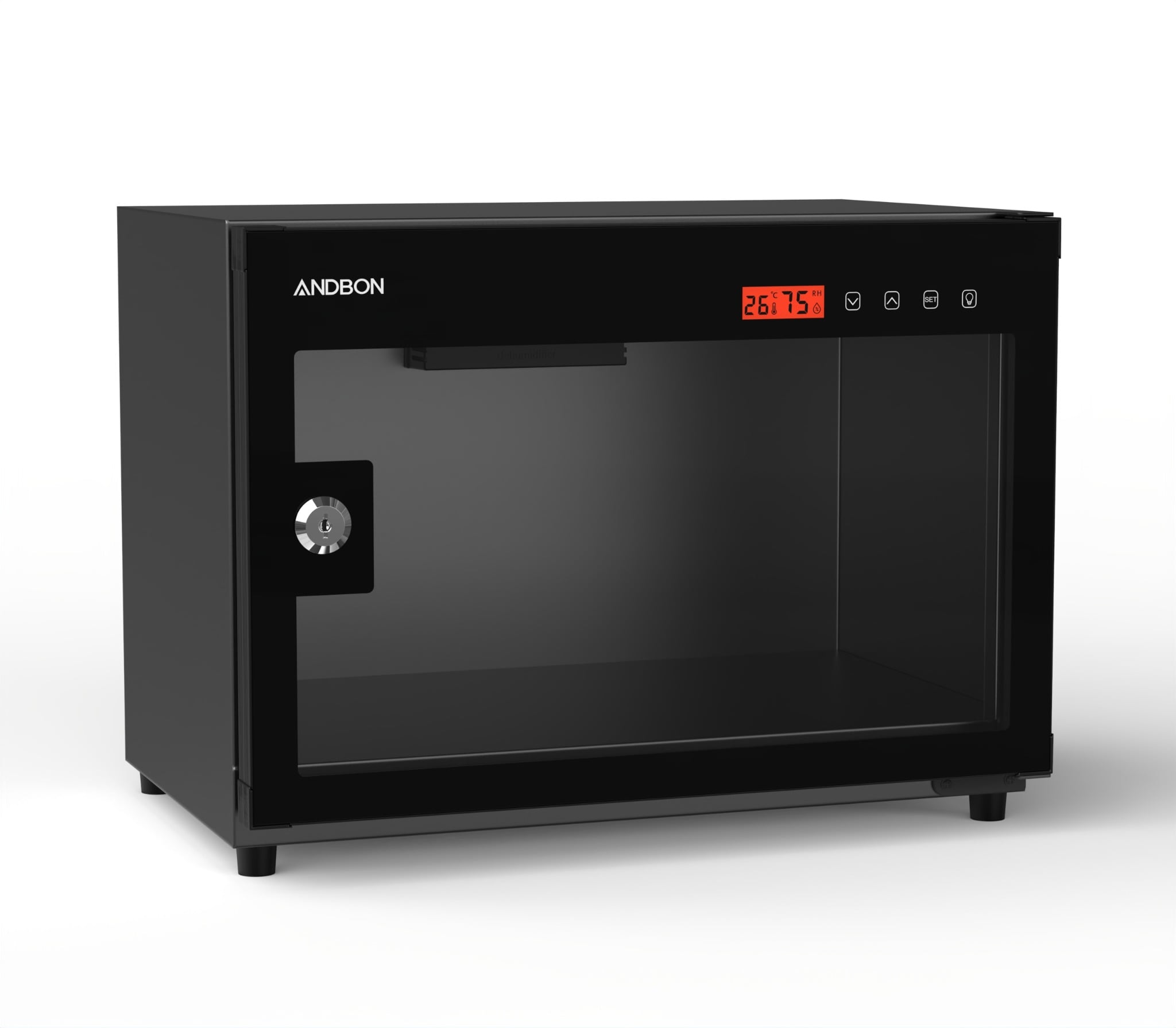 -Tủ chống ẩm gồm có một khoang, một cánh cửa kính 2 lớp chống xước được thiết kế chịu sự va đập và đảm bảo tuyệt đối độ ẩm bên trong với hệ thống gioăng cao su từ bao quanh tạo nên sự chắc chắn mỗi khi mở ra đóng vào.