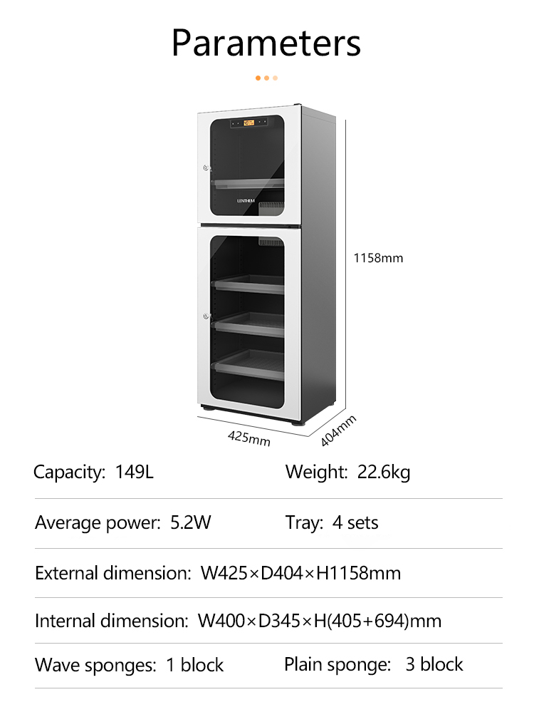 Tủ chống ẩm Lenthem sử dụng các khay kéo trong suốt được làm bằng vật liệu PS an toàn của hãng Chimei (Taiwan)