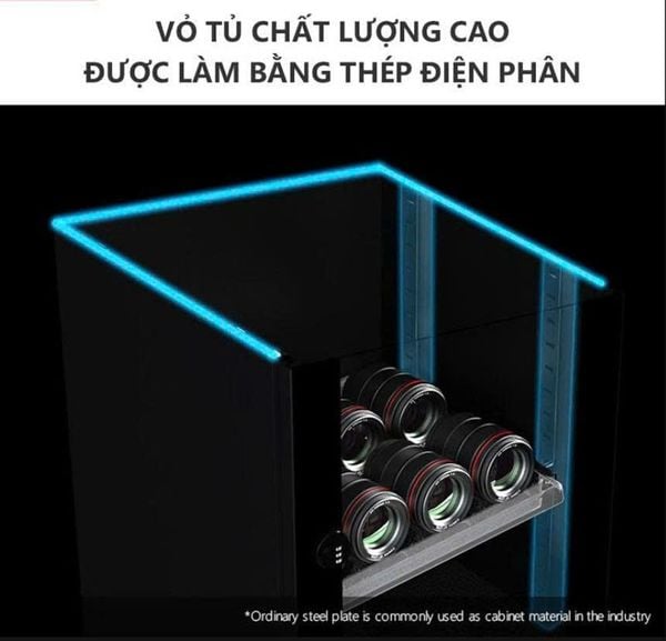 Tủ chống ẩm Lenthem sử dụng tấm thép điện phân chất lượng cao mang lại khả năng chống gỉ và ăn mòn tuyệt vời cho sản phẩm.