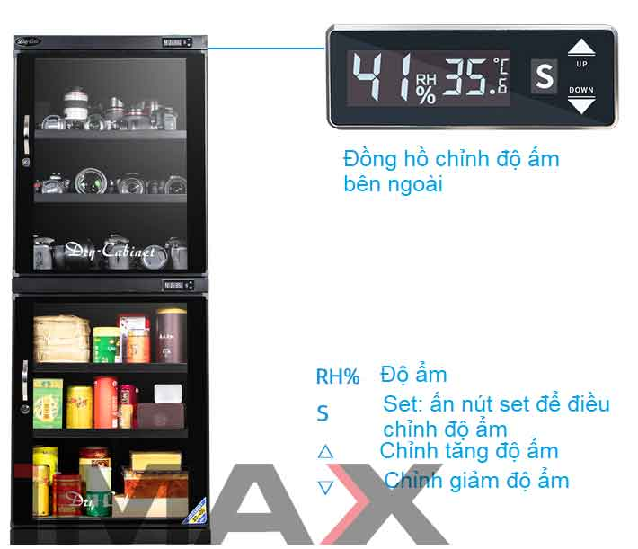 Điều khiển số ( Digital) - Đồng hồ đo và hiển thị độ ẩm và nhiệt độ: Chỉnh độ ẩm chính xác bên ngoài tủ