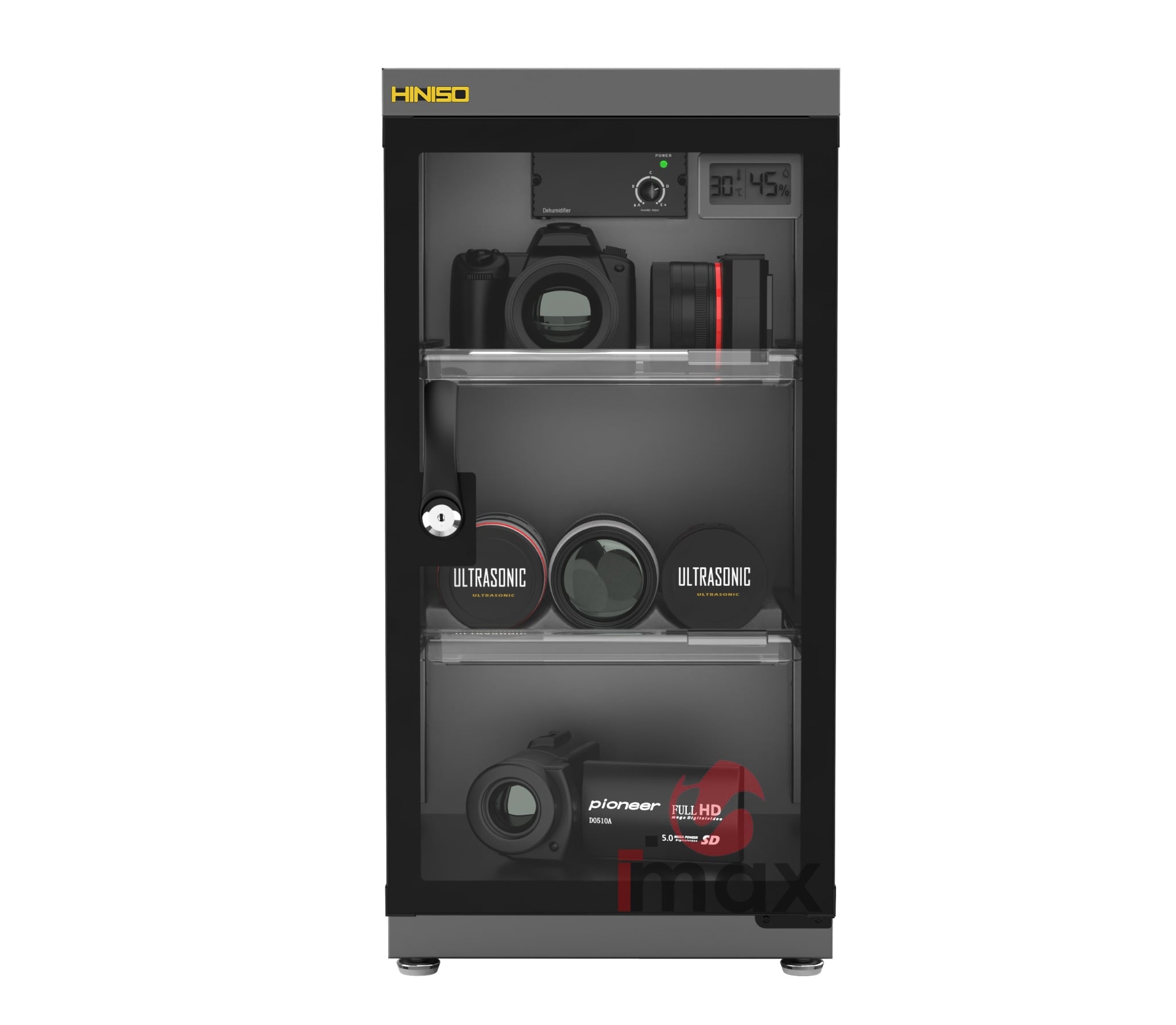 - Trên tủ được gắn 1 đồng hồ kỹ thuật số báo độ ẩm và có nút điều chỉnh độ ẩm ở bên trong
