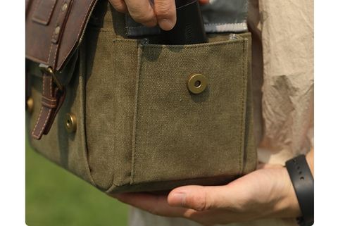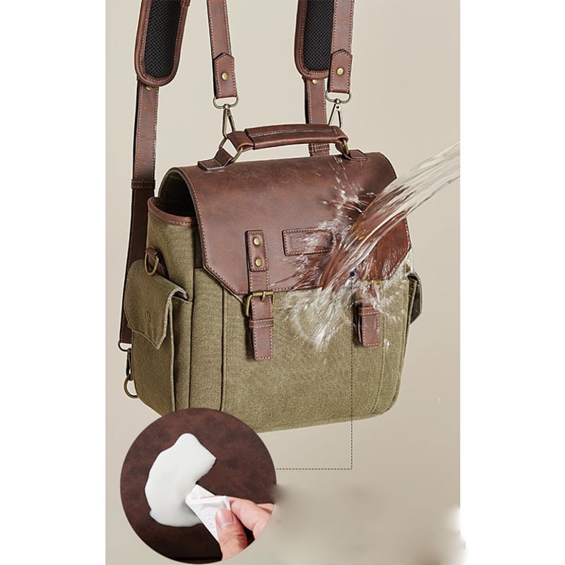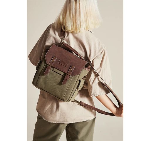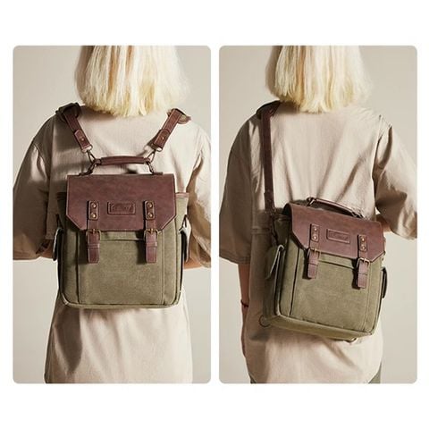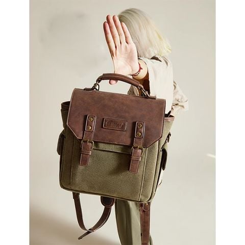 Chất liệu chính: Vải bạt chống thấm nước 16' màu cỏ khô + Da PU Crazy Horse