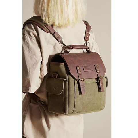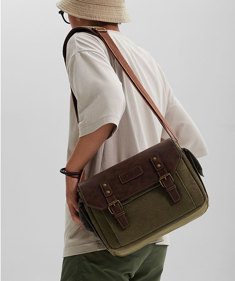 Chất liệu chính: Vải bạt chống thấm nước 16' màu cỏ khô + Da PU Crazy Horse