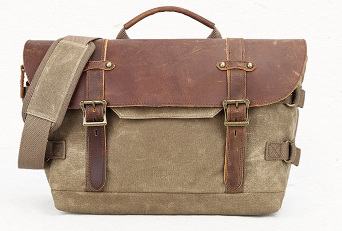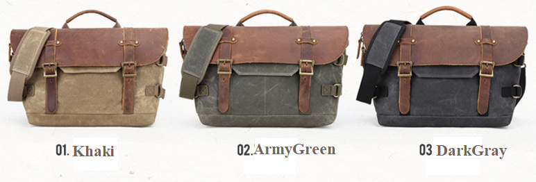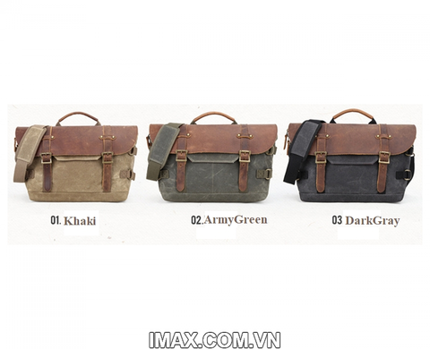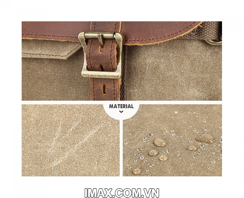 - Chất liệu: Vải Kaki kết hợp với da thật