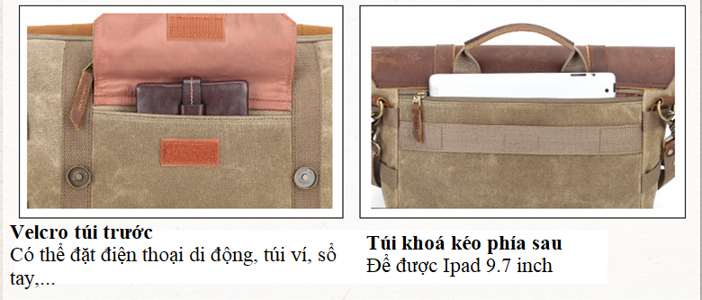 Túi được thiết kế ngăn để Laptop, máy tính xách tay cùng nhiều vật dụng cá nhân khác