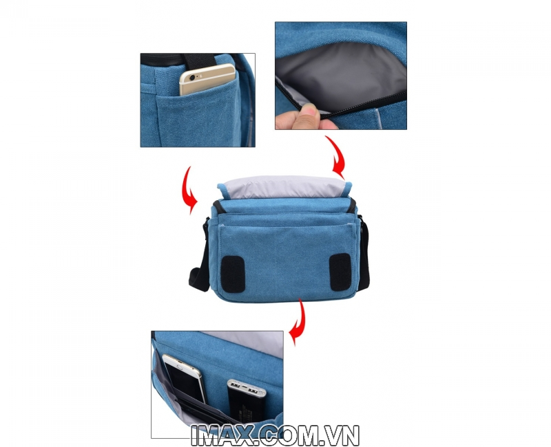 Thao tác nhanh vào khoang máy ảnh qua túi bên;