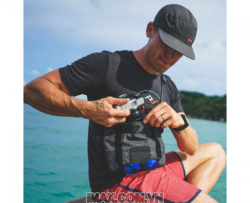 - Peak Design Field Pouch bao gồm một điểm gắn Capture, thiết bị có thể kết nối và gắn nhanh chóng thiết bị trên túi.