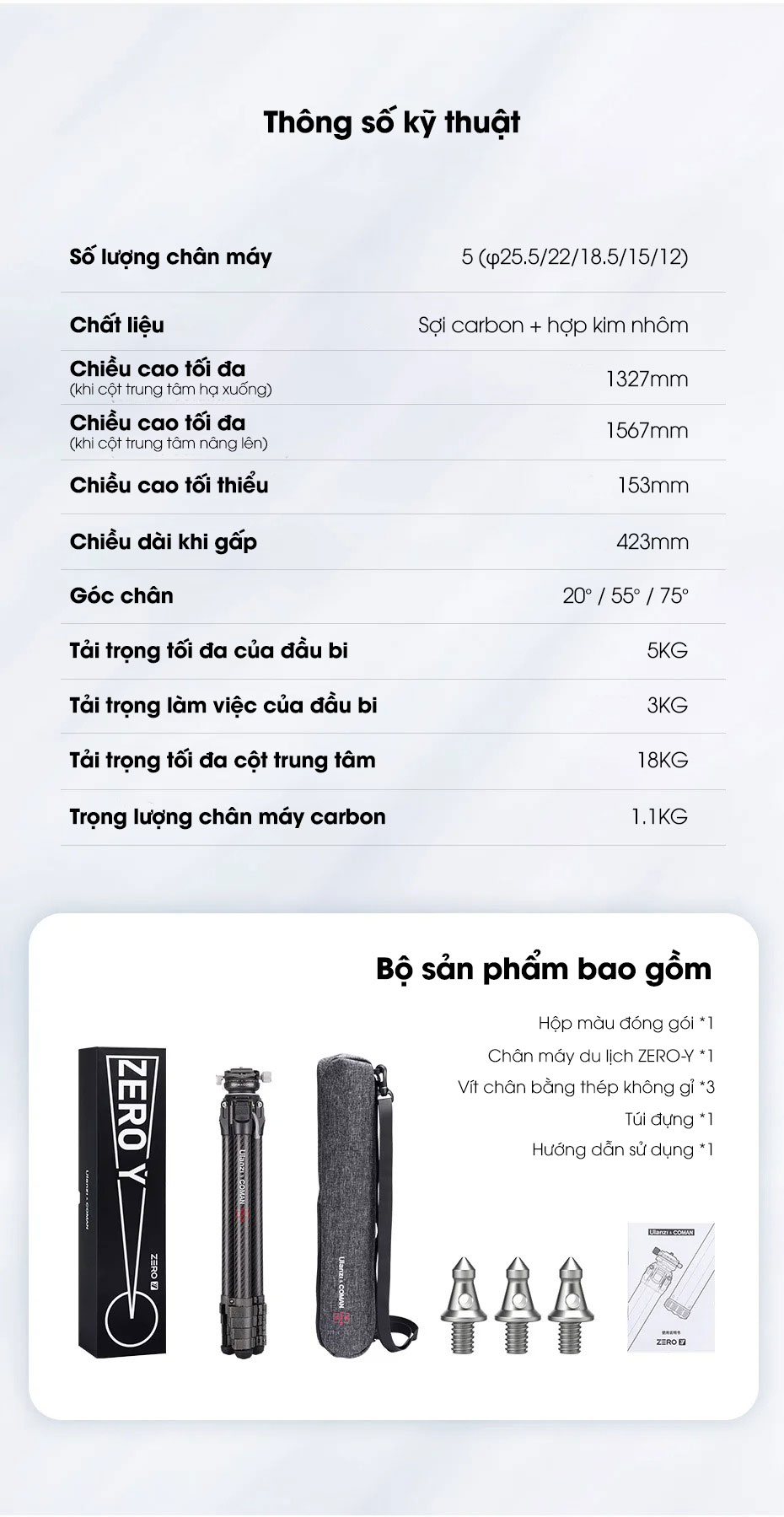 - 1 x Tripod Travel ZERO-Y