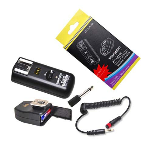 Từ xa kích hoạt đèn flash của bạn và chọn máy ảnh Nikon với Thiết bị kích hoạt Flash không dây RF-602N này từ Yongnuo . Nó bao gồm cả máy phát tín hiệu gắn trên máy nóng với cổng đồng bộ hóa máy tính cá nhân và bộ tiếp nhận với một sợi gắn phụ nữ 1/4 "-20, giày nóng nữ, và một cổng xuất sản phẩm độc quyền, chúng hoạt động với tần số FSK 2,4 GHz trên một Của 16 kênh và có phạm vi rộng 328 ', đồng thời có thể đồng bộ với tốc độ lên đến 1/250 giây và có chế độ chụp màn hình hai chức năng với chức năng báo chí và báo chí.
